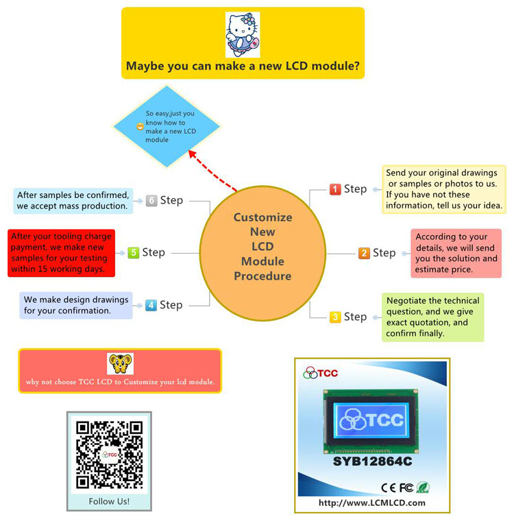 Our factory manufacture and sales LCD module in variety display color and size. We can also design and manufacture the LCD panel of TN,STN,FSTN,VA.and some other special type, as well as the LCD module of COB,COG,TAB and SMT.