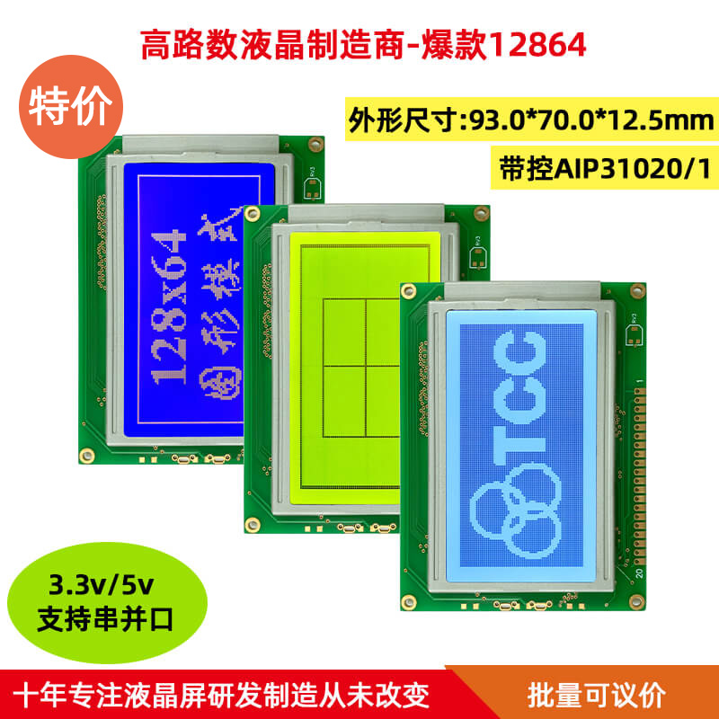 12864 | 93*70*12.5 | 72.0*39.0 | 0.48*0.48 | 5V | LED | AIP31107/8 | 圖片 |