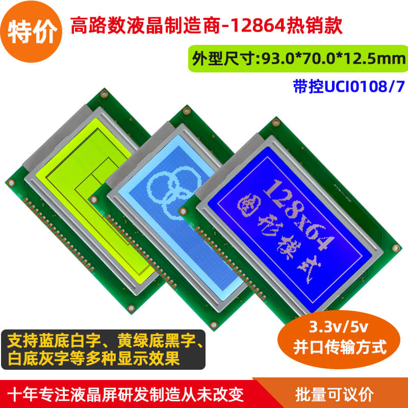 12864 | 93.0*70.0*14 | 72.0*39.0 | 0.48*0.48 | 3.3v,5v | LED | ST7920 | 圖片 |